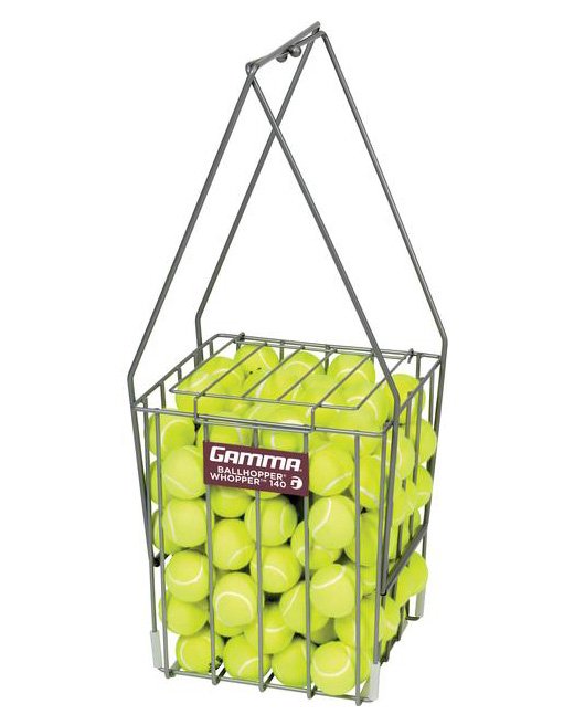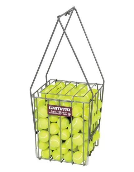 Kosz trenerski firmy Gamma na 140 piłek tenisowych. Koszyk wyposażony w klapkę zabezpieczającą przed wypadaniem piłek. Kosz nie zawiera piłek w cenie.