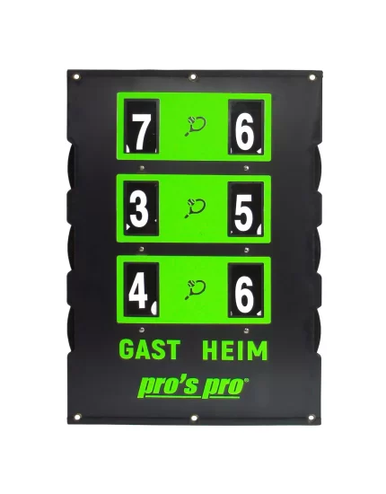 • Displays 3 set scores, each with a maximum of 7 points.