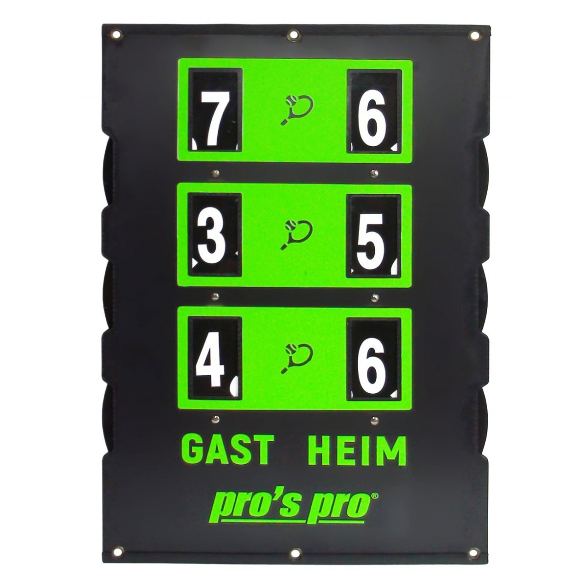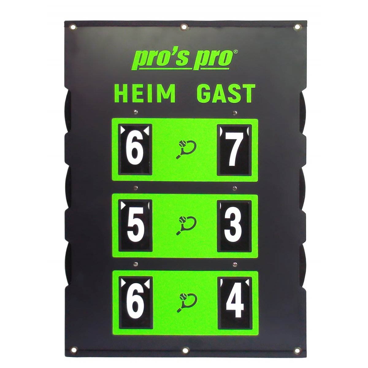 Black and green tennis scoreboard measuring 90 x 60 cm.