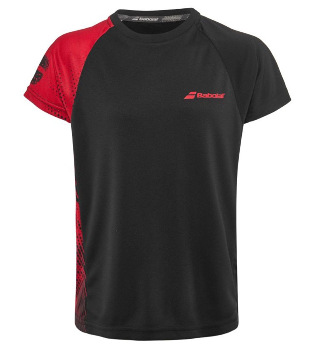 Juniorska koszulka tenisowa Babolat Performance Crew Neck Tee Boy w kolorze czarnym, wzbogacona o czerwone elementy. Koszulka dla chłopców Babolat Performance Crew wykonana jest z przewiewnego, oddychającego materiału.
