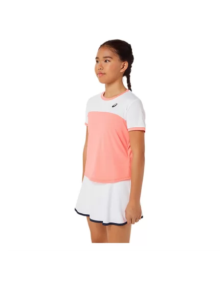 Asics Girls Tennis SS Top Guava Brilliant White - girl tennis shirt