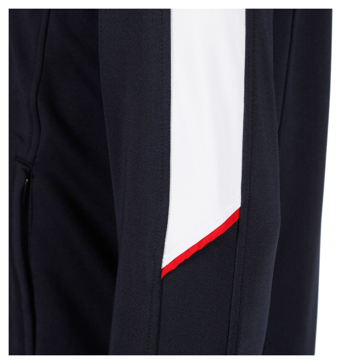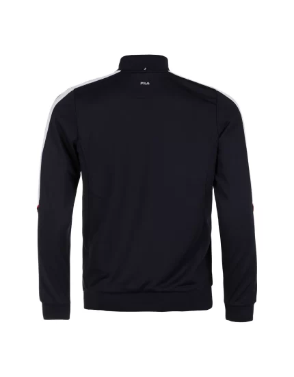 Fila Tracksuit Manuel - a classic style for the Fila brand in a comfortable, functional material. Contrasting colored stripes at the waist and sleeves. Zippers in the pockets and a high collar. Fitted trousers with internal waistband and drawstring, zippered legs ensure functionality.