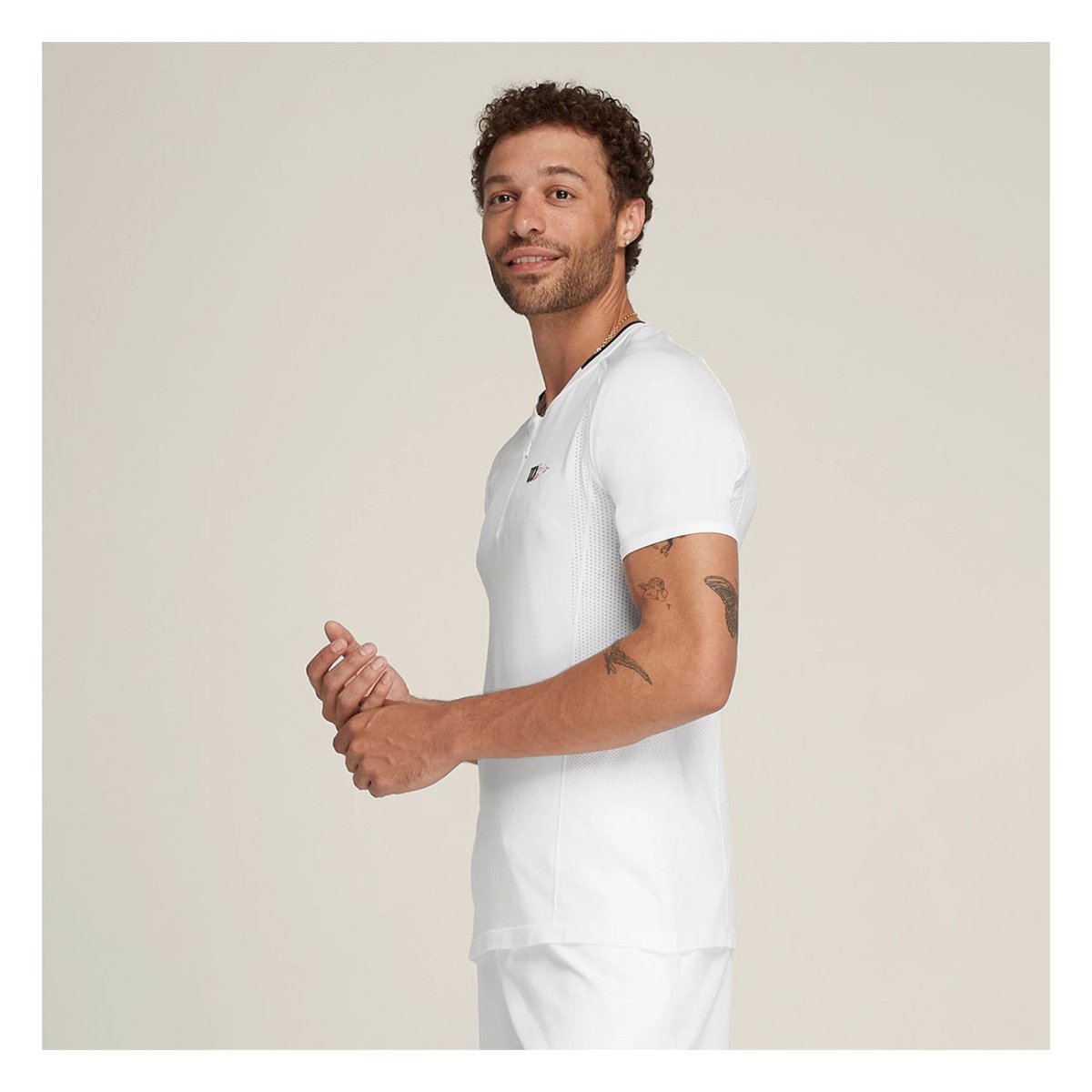 - In terms of design, the white color and logo on the left chest add a touch of class and dynamism to the tennis court