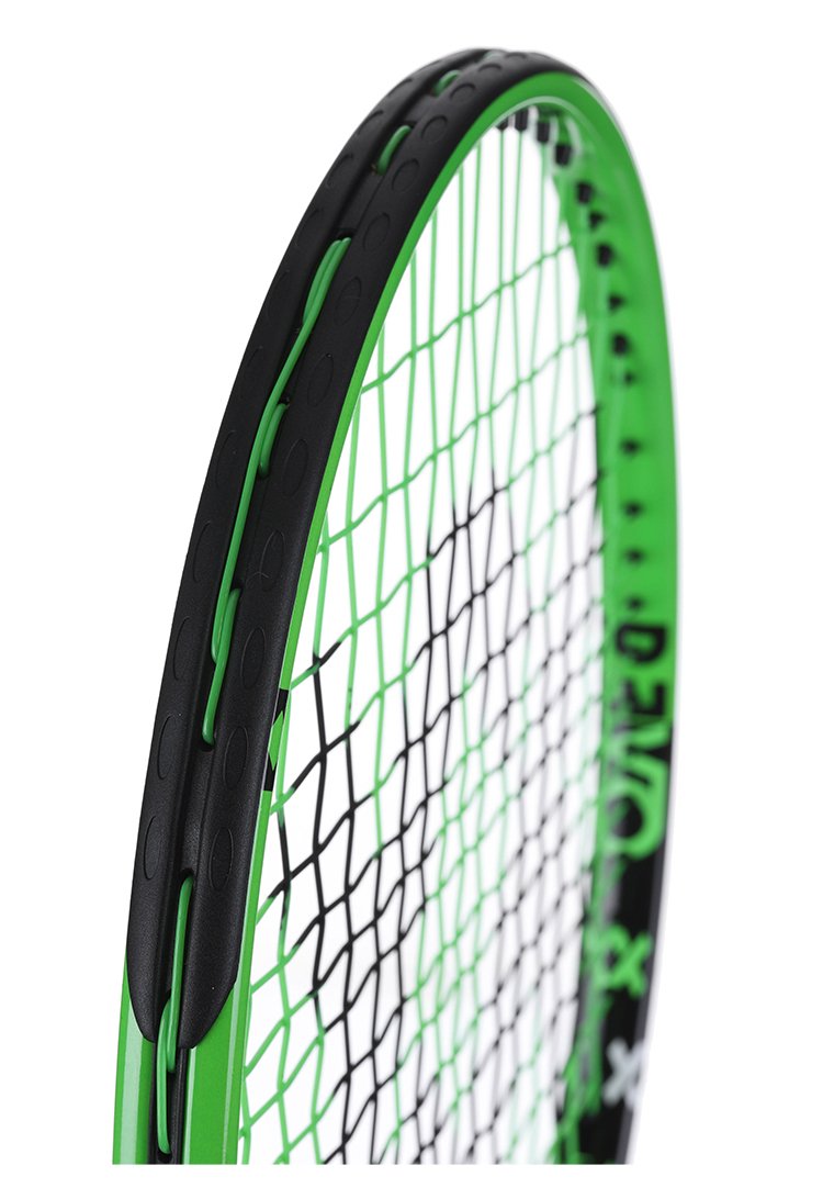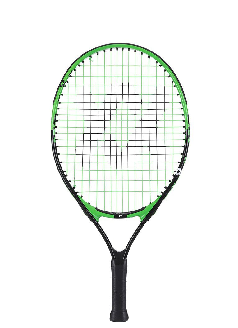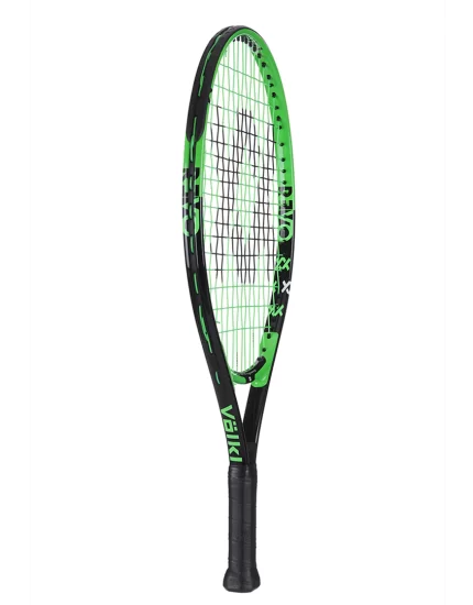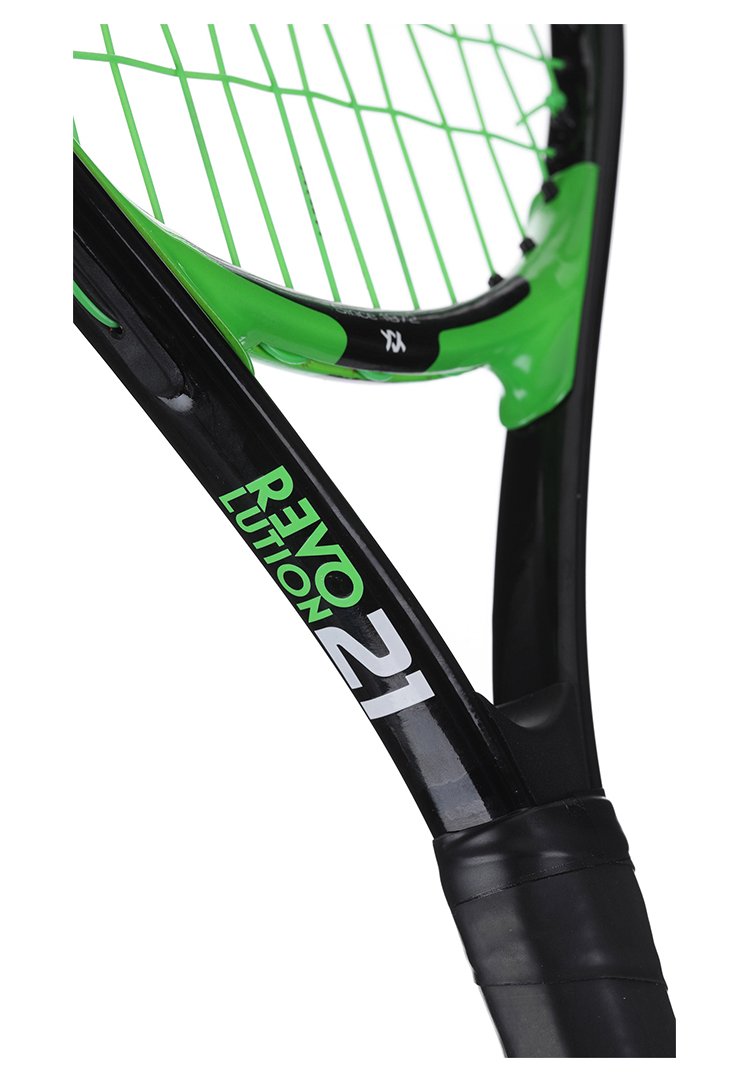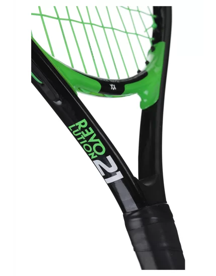 Lekka rakietka tenisowa dla dzieci do gry na małych polach kortu tenisowego. Polecana dzieciom o wzroście 100 - 113 cm. Oferowana jest z fabrycznie założonym naciągiem syntetycznym w kolorze zielonym i pokrowcem na 3/4 długości rakiety. Rakieta tenisowa 21 cali w czarno zielonym kolorze.