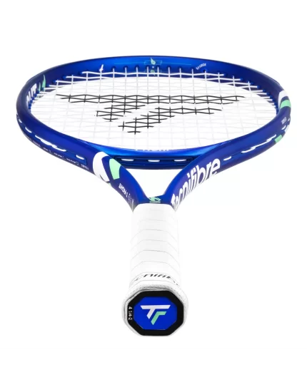 The Tecnifibre T-Fight 300 I.D. racket is a limited edition designed for the U.S. Open in New York. Named after Iga Świątek and Daniil Medvedev, the racket celebrates each player's success on the American court. Moving away from the signature white graphics of Tecnifibre rackets, this model breaks the color scheme, combining blue, white, and green with flame motifs.