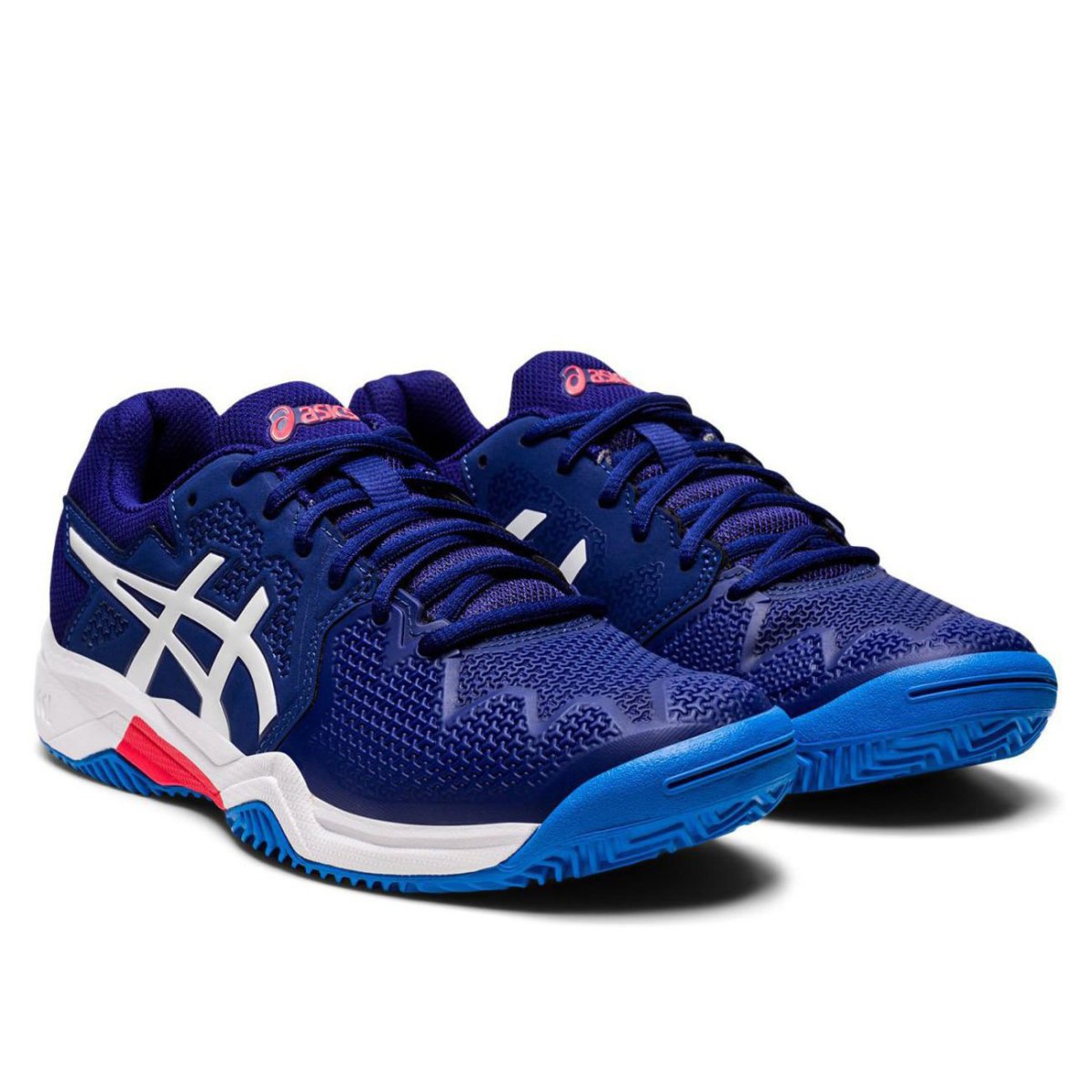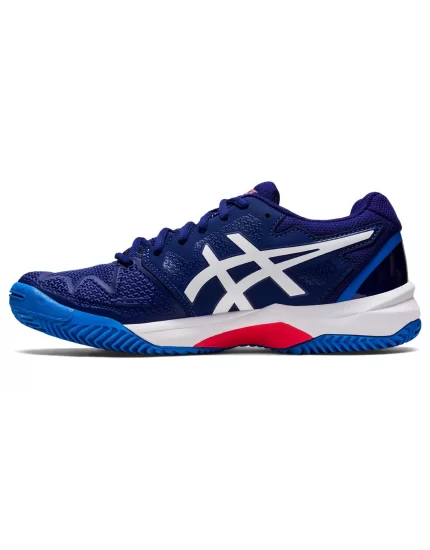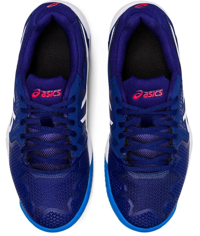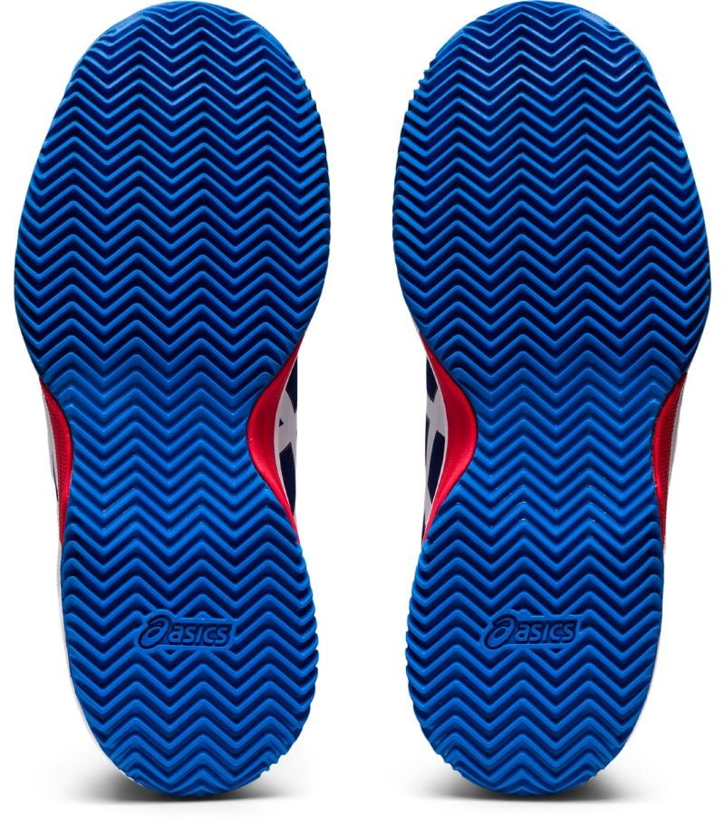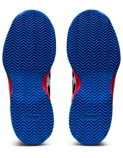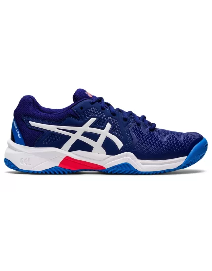 Granatowe, dziecięce buty tenisowe Gel-Resolution 8 Clay GS Dive Blue White z podeszwą na korty ceglane.