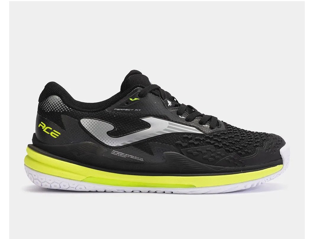 The new Joma Ace Men 2401 Black padel and pickleball shoes for men are an improved version of the legendary Ace, making it even more stable during the crazy movements of the padel. Tested by professional padel and pickleball players who get maximum performance from them.