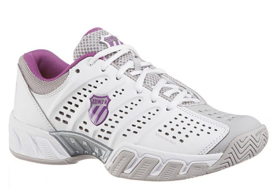 Obuwie tenisowe renomowanej firmy K-Swiss - model Big Shot Light. Znakomite do gry na wszystkich nawierzchniach. System Durawrap w cholewce i DragGuard w podeszwie redukują szybkie ścieranie w obrębie palców i pięty. Wytrzymała konstrukcja cholewki, panele meshowe do odprowadzania nadmiaru potu pozwalają na grę w gorące dni. Durawrap - ochrona przed ścieraniem cholewki na palcach i piętach. Specjalna formuła K-EVA amortyzuje i zwiększa trwałość podeszwy środkowej.