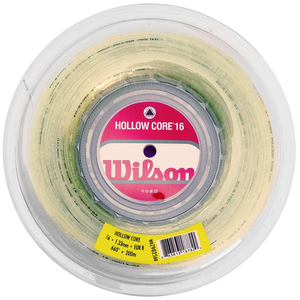 Wilson Hollow Core - a string for tennis rackets that allows rotating, controlled and comfortable play. The triangular core is surrounded by three layers of thin polyamide fibers, all in a polyurethane sheath. Hollow Core is a very dynamic string and is best suited for rackets with 16 vertical strings.